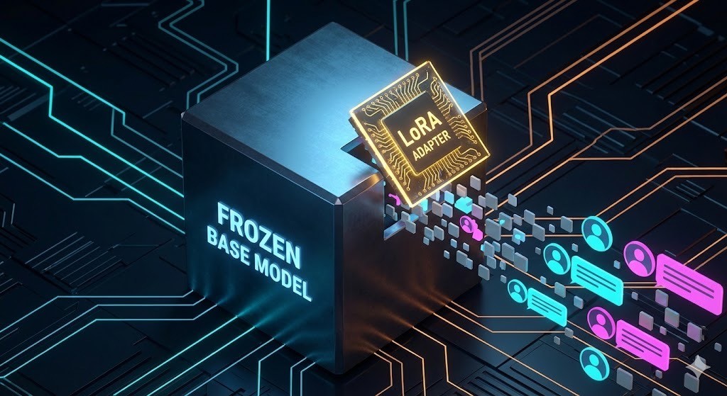 Low-Rank Adaptation (LoRA) technique allows a relatively small amount of tangible weights to the base model, so that it acts as a filter. This approach allows to personalize a model's output without the need of retraining of the entire model.